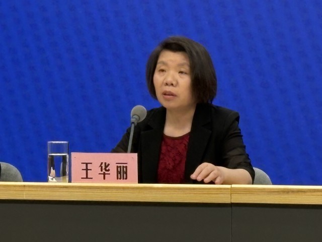 王华丽在发布会上回答记者提问。中青报·中青网记者 刘昶荣/摄
