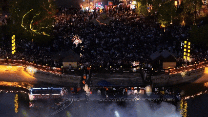 还有那轻灵飘逸的一苇渡河、惊险刺激的水上飞人、国风古韵的水畔筝音,一场场水岸联动特色演艺活动全天不间断上演。