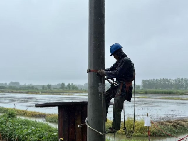 新华社武汉6月23日电(记者熊琦)21日上午,暴雨如注,湖北荆州石首市大垸镇北碾村的田野在雨幕中愈发朦胧。“雨势还在加大,必须赶在积水漫过田埂前完成架线!”在北碾村东河头八组,电工祁剑的呼喊声穿透雨幕。