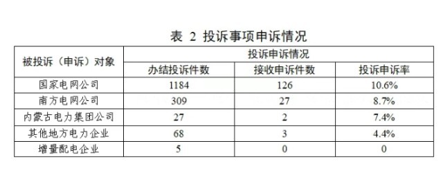 2025年5月,办结投诉事项1593件(含往期结转),12398热线平台接收申诉事项158件,投诉申诉率9.9%;其中,国家电网公司126件、南方电网公司27件、内蒙古电力集团公司2件、其他地方电力企业3件。
