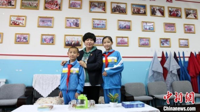 中新网乌鲁木齐6月25日电 (王小军)在新疆博尔塔拉蒙古自治州温泉县城镇小学一间47平方米的房间里,堆着叠放整齐的衣物,墙上贴满了孩子们的笑脸合影和手工作品。这间被师生们亲切称为“石榴籽”爱心屋的小天地,是该校教师吾吉用11年光阴,一点一滴编织起来的校园港湾。