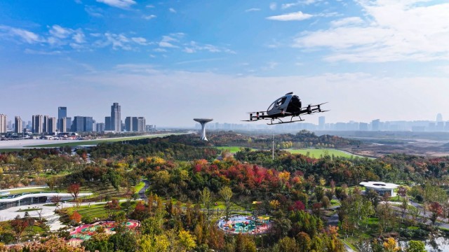 一架电动垂直起降航空器在合肥骆岗公园演示飞行。新华社发(采访对象供图)