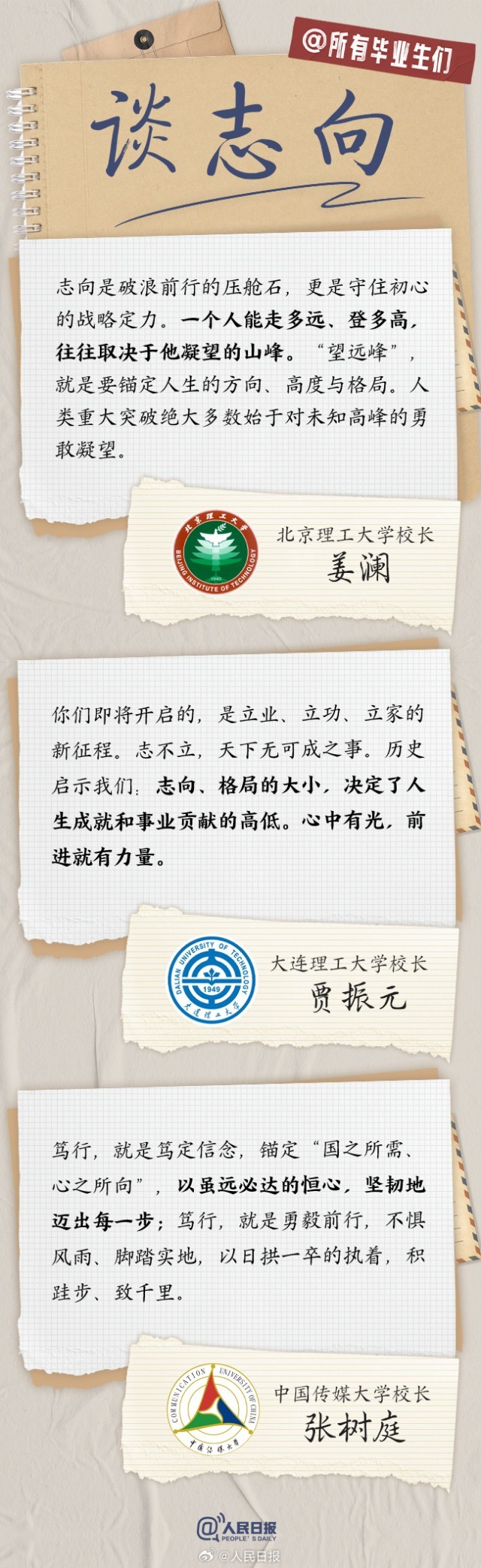 又到毕业季,各高校毕业典礼陆续举行。在这堂大学生涯“最后一课”上,校长留下了哪些嘱托与期望?谈实践、谈志向、谈奋斗、谈人工智能……愿这组寄语,成为你前行路上的力量与陪伴。