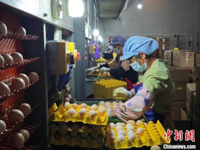 中新网赣州6月27日电(熊锦阳)夏日时节,走进江西省赣州市赣县区韩坊镇长演村蛋鸡养殖场,高大的鸡舍映入眼帘,传送带将新鲜鸡蛋送至分拣处,工人们正在将鸡蛋打包,准备发往广州等地。