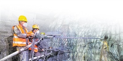 工人在进行爆破钻孔作业。 胡苗苗摄