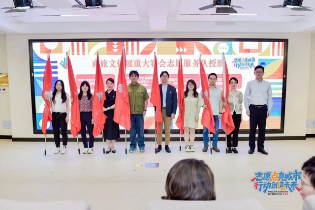 静安商旅文体展重大赛会志愿服务队授旗现场。团静安区委供图