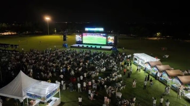 6月29日,数百人在南通滨江体育公园的LED巨屏前观看“苏超”比赛。 “南通发布” 图