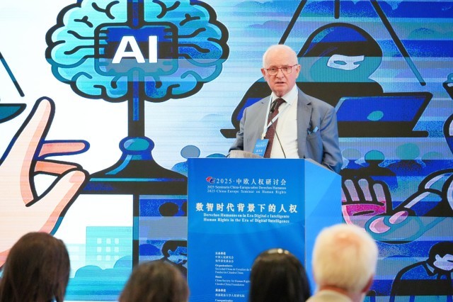 6月25日,“2025·中欧人权研讨会”在西班牙首都马德里举行,捷克左翼研究所学术委员会主席扬·坎贝尔作题为《人类学意义上的数字权利与人权》的主旨发言。主办方供图