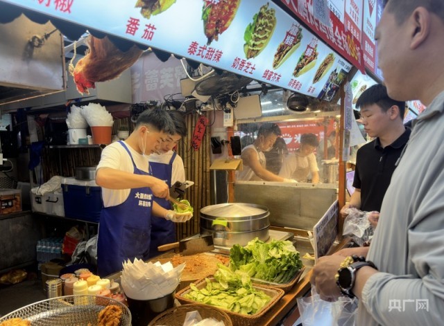 此外,众多摊主也纷纷化身网红博主,用镜头记录市井烟火,为夜市注入新的流量密码。“我的账号全网已经有200万粉丝量了,单一社交媒体仅一条视频的浏览量能达几千万。我在线上直播互动分享,吸引粉丝们线下打卡。”年轻摊主小李说道。通过线上引流、线下消费的方式,流量实实在在地转化成了营业额。