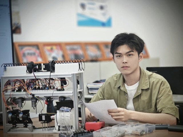 学校全力支持他们的想法,提供了场地、资金、技术指导,并帮助他们联系专业企业开展合作。作为项目负责人,董儒鑫充分整合学校学科优势,组建起一支涵盖自动化、机械、计算机、物联网甚至广告设计专业的跨学科团队。那个暑假,这群00后开启了“实验室即家”的攻坚模式:困了,几张实验桌一拼就是床;醒了,拉开桌子继续干。董儒鑫全程无休,被同学们戏称为实验室“霸总”。