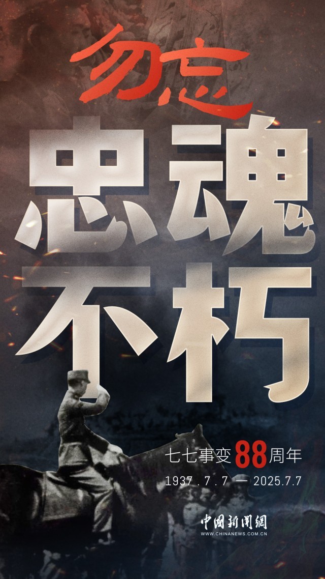 1937年7月7日,卢沟桥的枪声撕裂长夜,中华儿女赴汤蹈火,以血肉之躯筑起御敌长城。88载岁月流转,硝烟虽散,弹痕犹在,那段浸透血泪的历史,是刻在民族记忆里永不褪色的烙印。今日山河锦绣,国泰民安,正是先烈用生命换来的盛世。七七事变88周年,致敬英烈,铭记国殇,吾辈自强,护山河无恙!