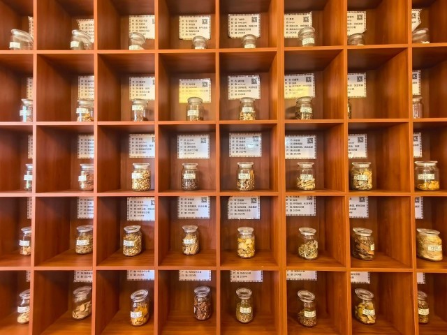 白沙黎族医药体验区内的药材展示柜。中青报·中青网见习记者 戴瑶/摄