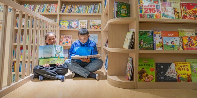 孩子们在位于西藏那曲市色尼区南部新城的“温暖嘉·色尼城市书房”看书(2024年6月17日摄)。