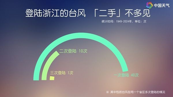如果“丹娜丝”在浙江二次登陆,那在历史上来看是不多见的。1949年至2024年之间台风二次登陆浙江的只有10次,而一次登陆多达40次。另外,登陆浙江的台风当中,多的是在台州和温州沿海登陆。