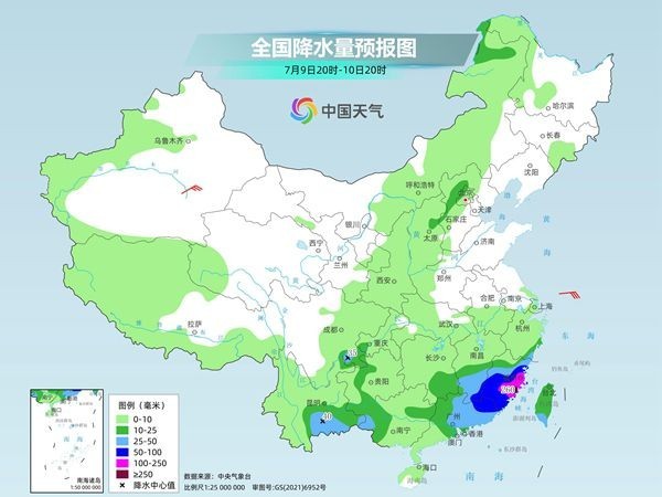 明天夜间到后天,降雨核心区域转移,预计福建中部和南部、江西南部、广东东部的部分地区有暴雨到大暴雨,福建东部局地特大暴雨。