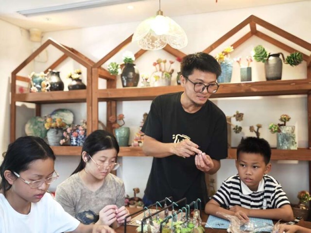 陈武森教学生做米塑。中青报·中青网记者 陈卓琼/摄