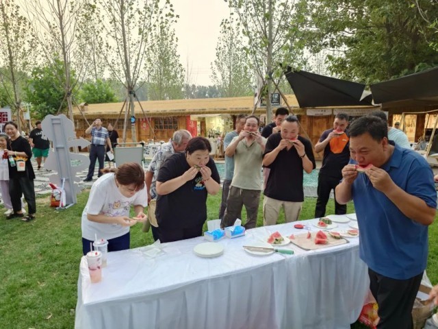 木屋市集区的趣味挑战赛同样备受追捧。吃西瓜大赛中,参赛者们大口吞咽冰镇西瓜,清凉汁水沾满嘴角却丝毫不停歇;10kg哑铃挑战赛旁,围观者为挑战者呐喊助威,成功举起哑铃的游客赢得了满堂喝彩;“嗝嗝巫”喝可乐挑战赛则充满欢乐反差,参赛者们争分夺秒畅饮,赛后的“打嗝”声让现场笑声不断。辛庄定制纪念品也带给了大家独特的“夏夜战利品”,让大家满载而归。