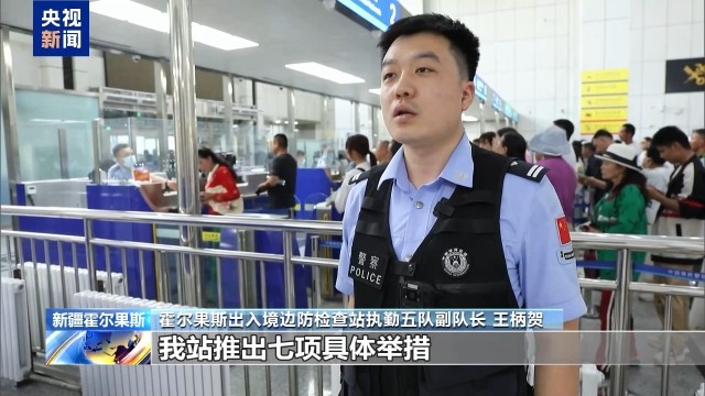 霍尔果斯出入境边防检查站执勤五队副队长 王柄贺:为保障旅客高效通关,我站推出七项具体举措,比如预约通关、错时通关、延时通关。现在日均查验人数较去年增长近一倍,有效提高通关效率。