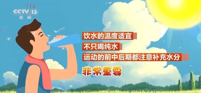 专家介绍,饮水的温度适宜、不只喝纯水、运动的前中后期都注意补充水分,是非常重要的。