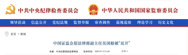 中国证监会原法律部副主任吴国舫被“双开”。
