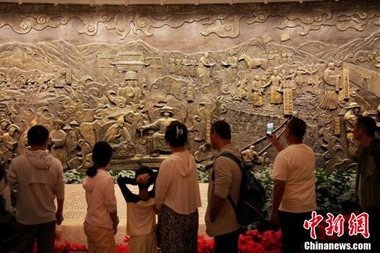 7月15日,在位于西藏拉萨的西藏博物馆,观众参观西藏历史画卷浮雕。据了解,西藏博物馆设有基本陈列《雪域长歌—西藏历史文化展》《离太阳最近的人—西藏民俗文化展》,充分展示西藏地区历史发展进程与文化面貌。