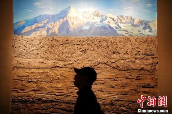 7月15日,在位于西藏拉萨的西藏博物馆,观众驻足复原的尼阿底遗址地层剖面前。