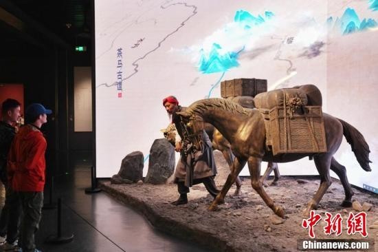 7月15日,在位于西藏拉萨的西藏博物馆,文成公主进藏的《柏海迎亲》塑像吸引观众。