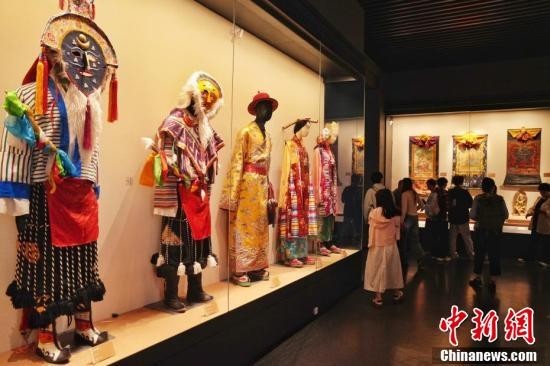7月15日,在位于西藏拉萨的西藏博物馆,藏戏服饰吸引观众。