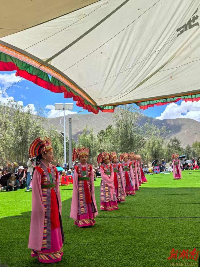 “藏戏是我们藏族文化的活态瑰宝,那五彩斑斓的面具,都是对角色灵魂的隐喻,那穿云裂石的唱腔,藏着高原人对天地的敬畏。”国家级非物质文化遗产项目湘巴藏戏代表性传承人次仁多吉,在现场观看演出。他说,看到孩子们出色的表演,心里不禁涌出一股热流。这让他看到了这门艺术最生动的传承图景,就像高原上的格桑花,一茬接着一茬开。“藏戏的希望啊,正跟着这些小小的身影蹦蹦跳跳地往前奔呢!”