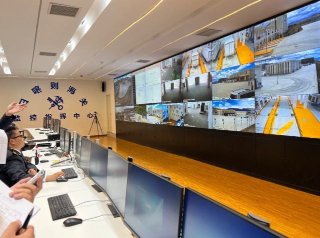 图为西藏日喀则国际陆地港海关监控大屏。李迅典 摄