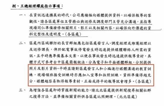 有知情人士提供台电6月份内部会议记录,其中董事长指示,停电时要及时向媒体发布照片影片;总经理也要求各区处单位指导现场同仁准备抢修相关照片、影片,还让现场领班接受拍照训练。管理层自上而下都在强调照片影片的重要性,不禁让人质疑:现场工作人员究竟是抢修重要,还是拍照回传重要?