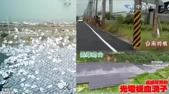 尤其如今许多太阳能系统不只设在沿海或养殖场,更遍布在人口密集的市区如校园、家户、小型工厂等建筑物屋顶。强风吹飞许多光电场的太阳能光电板,嘉义、台南等地都传出光电板砸屋又毁车的灾情,甚至有的光电板直接飞插在学校的操场。光电板本要挽救“非核家园”时代的用电,结果变成“杀人凶器”。