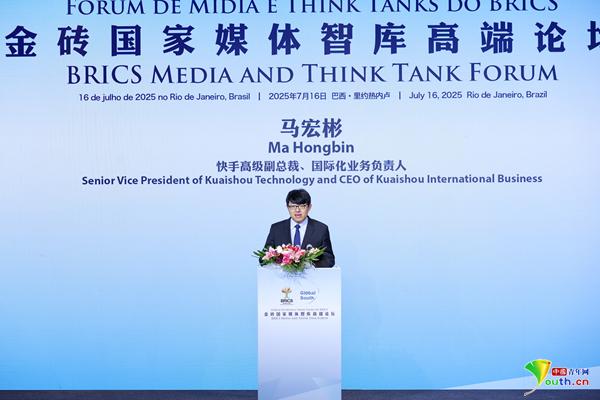 中国青年网北京7月18日电(记者 杨月)7月16日,以“共创金砖未来 共谱南方新篇”为主题的金砖国家媒体智库高端论坛在巴西里约热内卢举行。快手高级副总裁、快手国际化业务负责人马宏彬受邀在开幕式发言,深度分享了快手海外版Kwai在巴西市场的探索与实践,立体展现了中国科技企业对于推动全球南方国家数字经济发展的观察和思考。