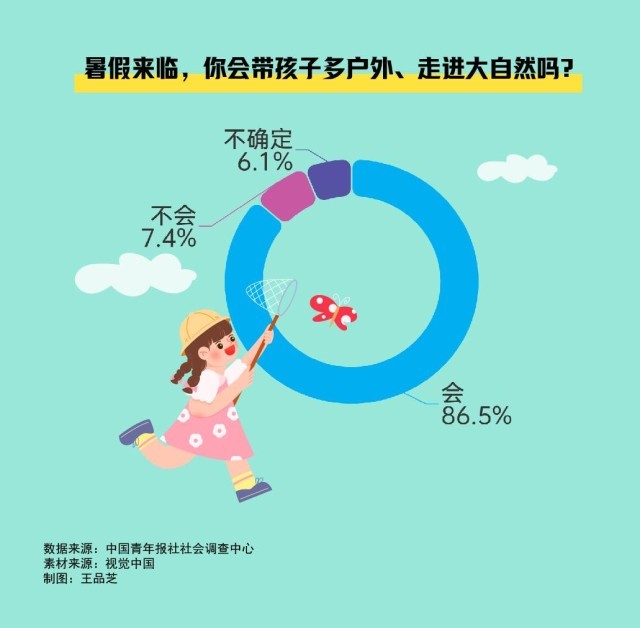 调查中,86.5%的受访家长表示暑假会带孩子多户外、走进大自然。