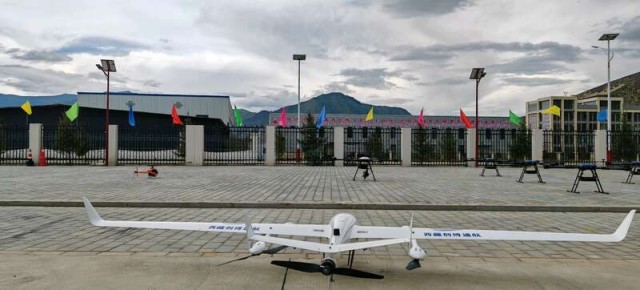 西藏创博通航厂区停放的“苍鹰”系列无人机。中青报·中青网记者王俊秀摄