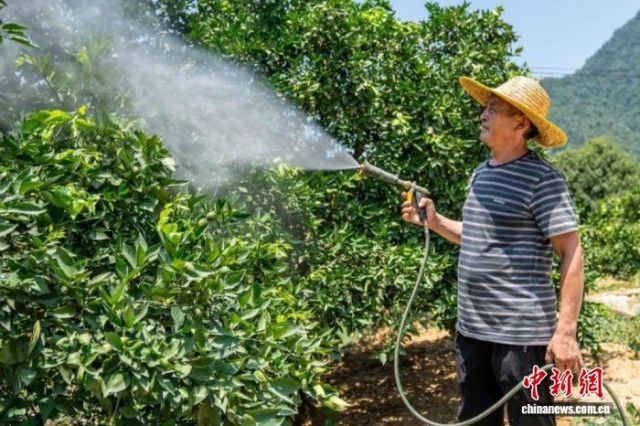 三峡移民杜远新在橘园开展夏管工作。陈涛 摄