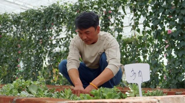 图为产业工人阿乃正在打理园区内的绿植。人民网记者 次仁罗布摄