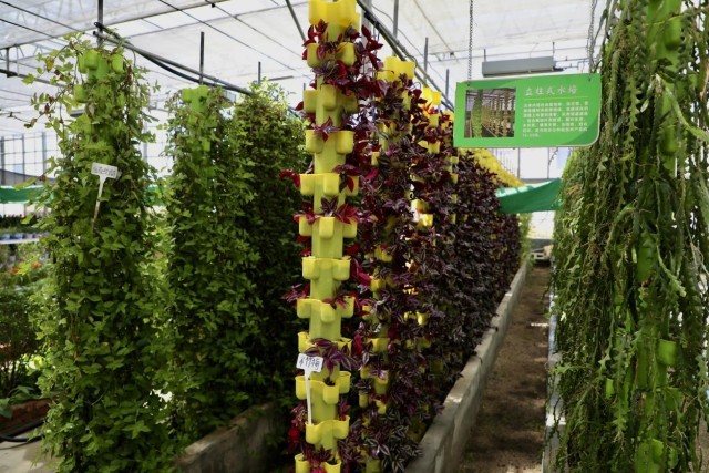 图为才纳园区内立柱式水培 。人民网记者 次仁罗布摄。