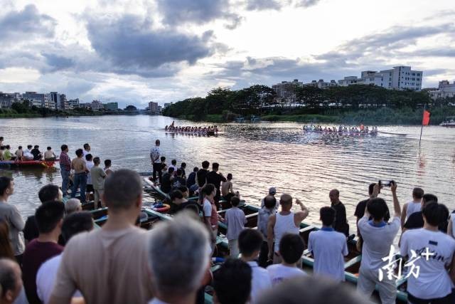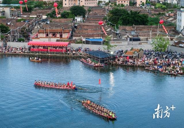 6月20日,汕头潮南区华桥乡,龙舟赛吸引了大批乡亲前来围观。