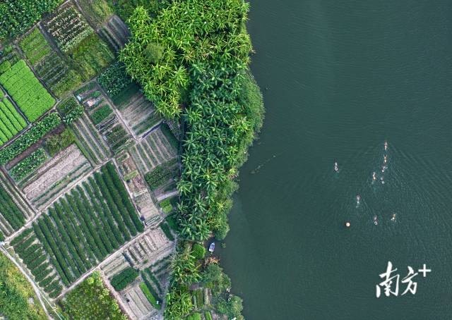 6月22日,汕头潮阳区铜盂镇,练江支流形成的天然泳场,一群爱好者正在游泳。