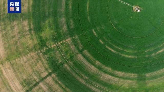 在干旱少雨的沙漠里,如何利用有限的水资源实现作物生长,曾经困扰着几代人。如今,借助指针式喷灌机技术,相比漫灌可节水30%到50%,而相比人工浇水,每100亩地可节省千元左右。随着这一技术的广泛应用,一个个绿色的大圆圈,正是向沙漠要良田的见证。