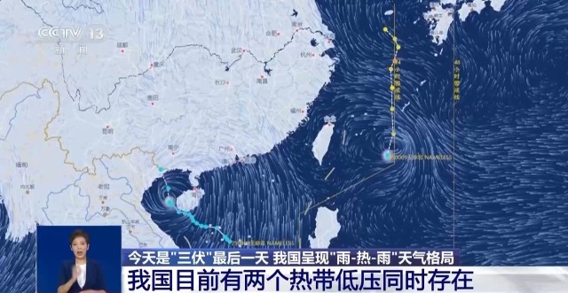 今天是“三伏”的最后一天,受强盛的副热带高压影响,今天雨热分布格局变化不大。