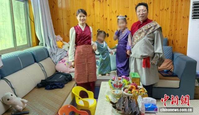 黄小芳一家人共同庆祝藏族传统节日。 受访者供图