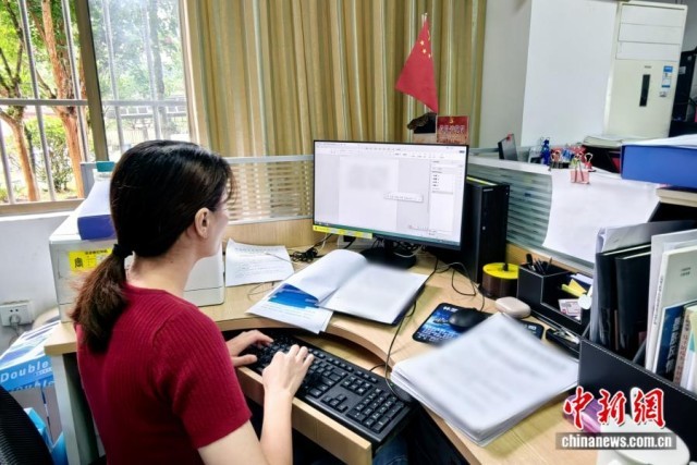 图为黄小芳在办公室撰写材料。 受访者供图