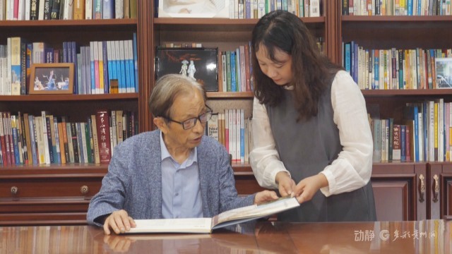 顾焕章翻看纪念册照片