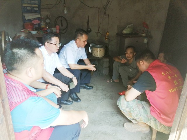 2024年9月,罗城仫佬族自治县东门镇佑洞村,张文彬(左二戴眼镜者)开展监测户走访调研。银维觉/摄