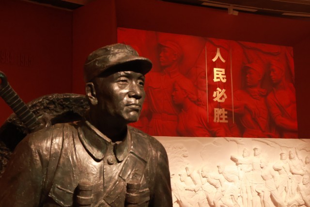 刘开渠1944年创作、鲍海宁2015年重作的雕塑《无名英雄战士》。中青报·中青网见习记者 李怡蒙/摄