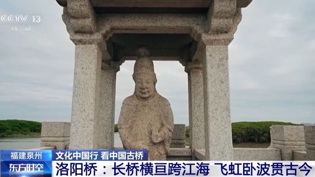中国海外交通史研究会理事 李国宏:洛阳桥的石将军共有四尊,分列安置在桥的南北两端,两两相对而立。无论是它的纹饰还是人物的神情,都栩栩如生,为研究宋代石雕技艺提供了非常珍贵的实物资料。