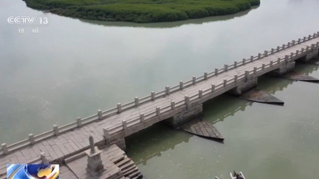 总台记者 赵晟萱:洛阳桥有这样一方摩崖石刻,上面写着“万古安澜”。其实在洛阳桥建成之前,这里是一个渡口,叫“万安渡”,这也是为什么,洛阳桥又被称为“万安桥”。