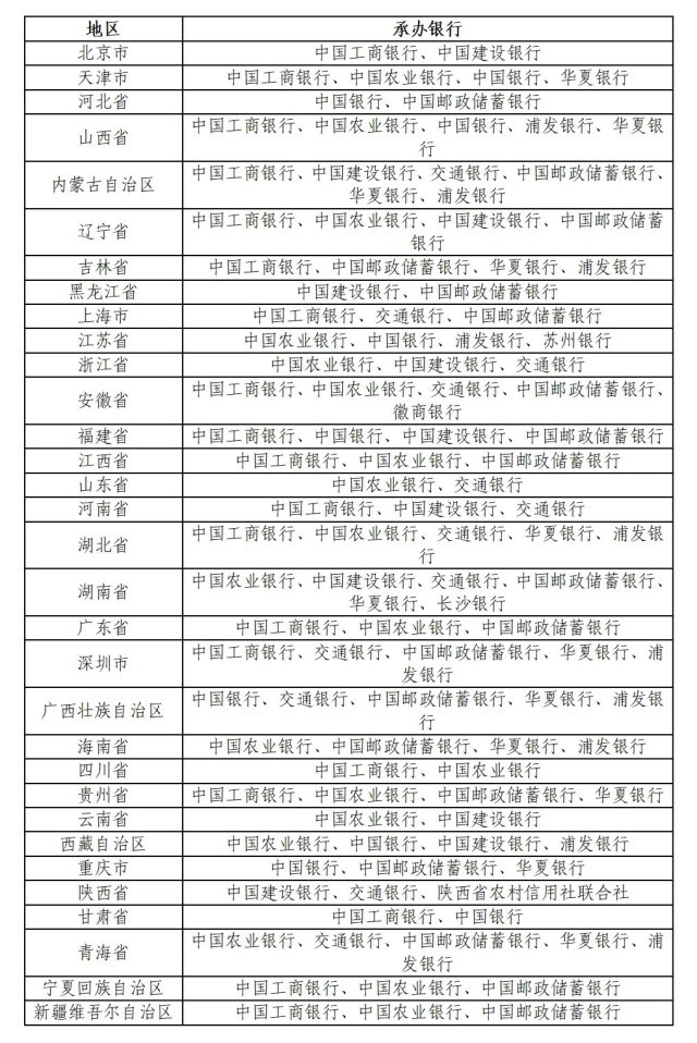 中国工商银行、中国农业银行、中国银行、中国建设银行、交通银行、中国邮政储蓄银行、华夏银行、浦发银行、苏州银行、徽商银行、长沙银行、陕西省农村信用社联合社(以下统称承办银行)共同承担中国人民抗日战争暨世界反法西斯战争胜利80周年双色铜合金纪念币的预约兑换工作。各地区具体安排如下: